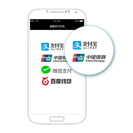 漫宁易支付,为iOS/Android原生/H5 App提供支付解决方案:支持微信支付、支付宝支付、银联手机支付、百度钱包等。